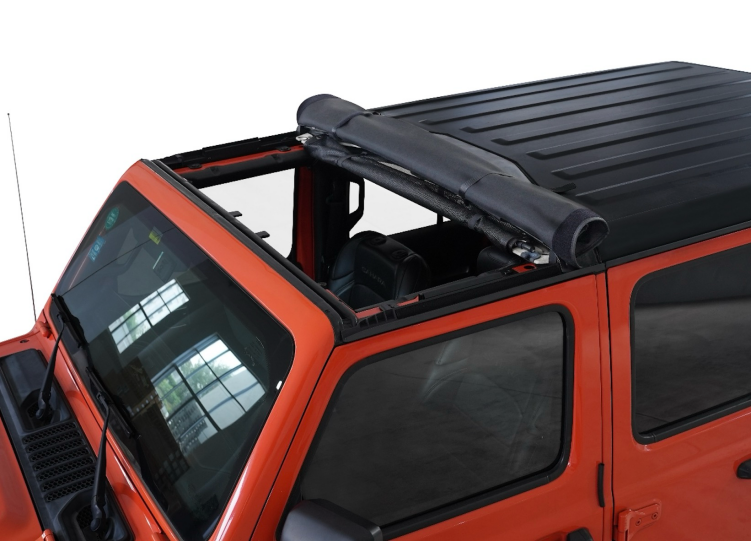 Patented easy roll up opening, gets instant sunshine and fresh air without needing to remove and store hard top front panels.